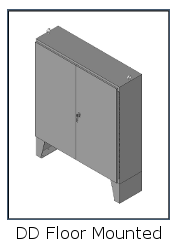 These enclosures are made from 12 gauge steel. All seams are continuously welded and there are no holes or knockouts. These enclosures have overlapping doors which eliminate the need for a center post. A 3-point latching mechanism, operated by a key-locking handle, holds the doors securely closed. There are rollers on the latch rods for easier door closing. Heavy gauge continuous hinges support each door. Each enclosure has a print pocket, 12" floor stands, heavy duty lifting eyes, and body stiffeners. Collar studs are provided for mounting the option panels. Panels must be ordered separately.