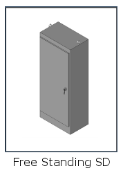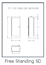 These enclosures are made from 12 gauge steel. All seams are continuously welded and there are no holes or knockouts. These enclosures have overlapping doors which eliminate the need for a center post. A 3-point latching mechanism, operated by a key-locking handle, holds the doors securely closed. There are rollers on the latch rods for easier door closing. Heavy gauge continuous hinges support each door. Each enclosure has a print pocket, 12" floor stands, heavy duty lifting eyes, and body stiffeners. Collar studs are provided for mounting the option panels. Panels must be ordered separately.