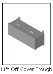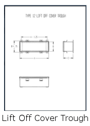 These troughs are constructed from 14 gauge steel. All seams are continuously welded and there are no holes or knockouts. External screw clamps on each long side ensure a seal between the gasketed cover and the trough. External feet are provided for mounting. The standard finish for these enclosures is ANSI 61 gray polyester powder coat.