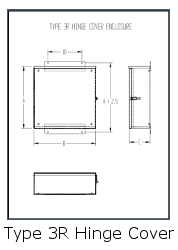 Barber Electric “Type 3R Hinge Cover Enclosures” are designed for use as wiring boxes and junction boxes in outdoor installations. They are designed to protect the enclosed equipment against rain and sleet.