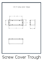 The 2-1/2 x 2-1/2, 4 x 4, and 6 x 6 wireway sizes are made from 16 gauge steel and are available with or without electrical knockouts. The 8 x 8, 10 x 10, and 12 x 12 wireway sizes are made from 14 gauge steel and are available without knockouts only. The covers are secured with stainless steel machine screws. These troughs have a galvanized finish. A powder coated finish is also available for these products upon request.