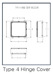 Barber Electric “Type 4 Hinge Cover Enclosures” are designed to house electrical controls and instruments in area which may be regularly hosed down or are otherwise very wet.